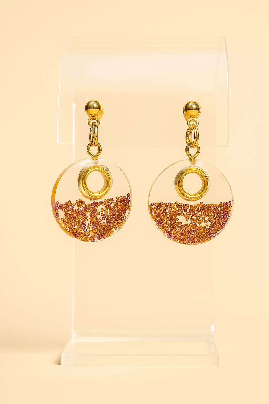 Step into effortless style with the Radiant Resin Hoops, carefully handcrafted from UV resin. Their sleek, glossy finish catches the light beautifully, giving these hoops a vibrant, modern appeal. Lightweight yet durable, they’re a versatile accessory that transitions seamlessly from day to night.